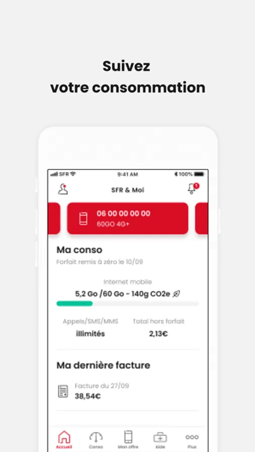 - Maîtrisez votre budget où que vous soyez, en France ou à l’étranger, grâce au suivi détaillé de vos consommations pour l’ensemble de vos lignes Mobiles et Box SFR