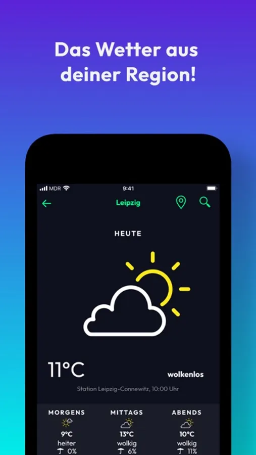 • Wetter: Sei stets informiert, wie sich das Wetter in deiner Region entwickelt. Wir ermitteln deinen Standort und halten dich auf dem Laufenden, ob in den kommenden Tagen Regenwolken aufziehen, ein kalter Winter einbricht oder die Sonne strahlen wird.
