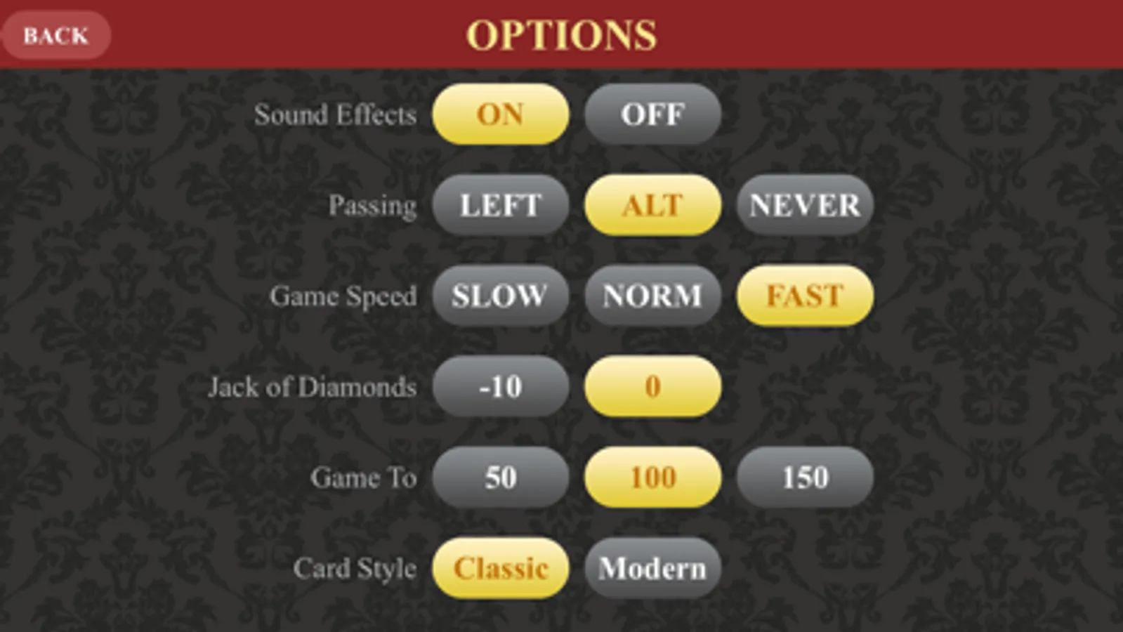 Hearts Free features an outstanding artificial intelligence engine. Three different difficulty levels ensure that you can play against a computer opponent that matches your skill level.