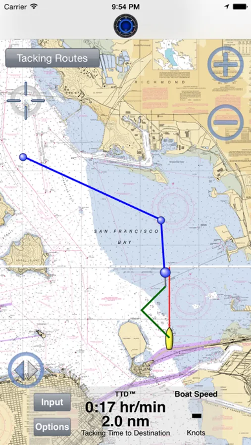 • Use our wireless Wind Instrument (www.SailTimerWind.com) to see wind direction, angle & speed. Just enter a waypoint and your optimal tacks will update automatically as the wind changes.