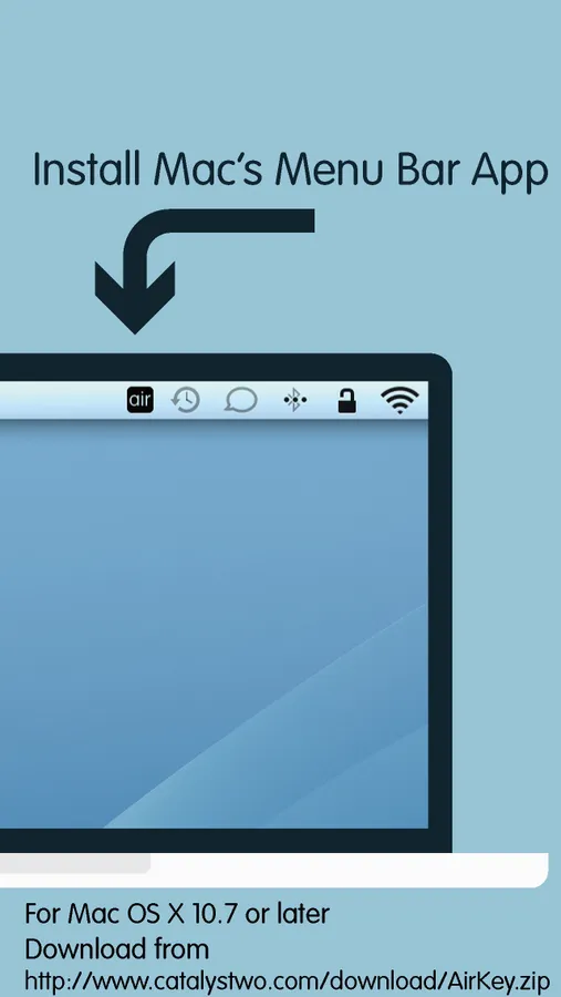 AirKey for Mac is a menu bar application. The icon does not appear in Dock. It does appear on the main menu bar (at the top of the screen.)