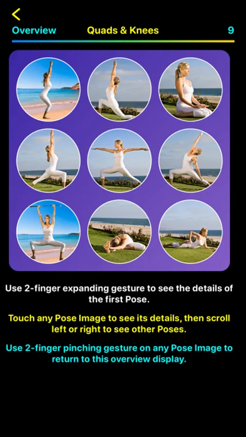 • Quads/Knees – 9 poses provide a solid stance for upper body twisting; and proper weight shift when swinging a golf club.