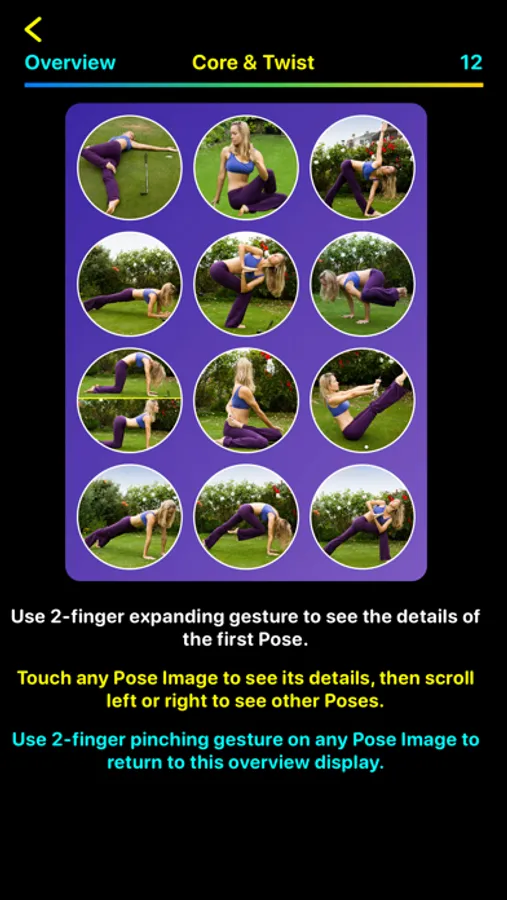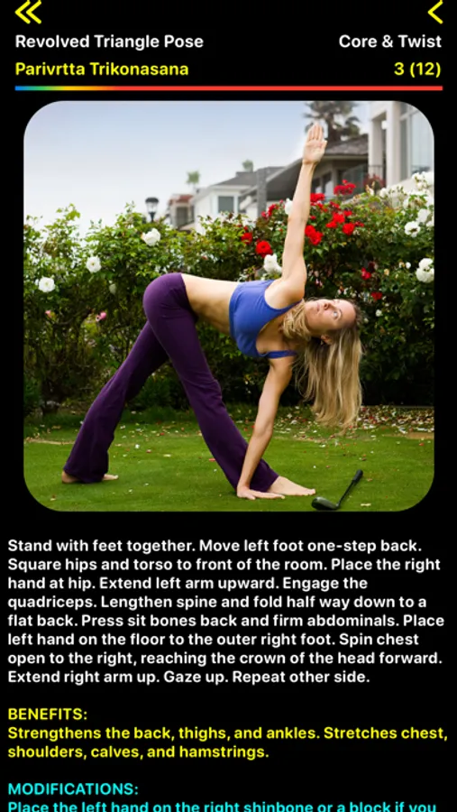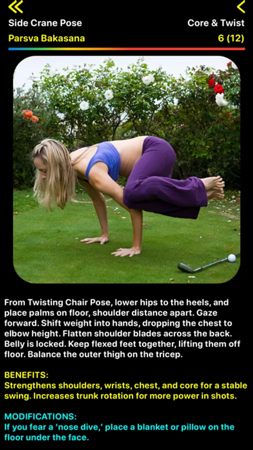 • Twist/Core – 12 poses help you strengthen your most important muscle groups. This increases your strength and flexibility, balance, range of motion and shoulder turn for maximum power and distance.