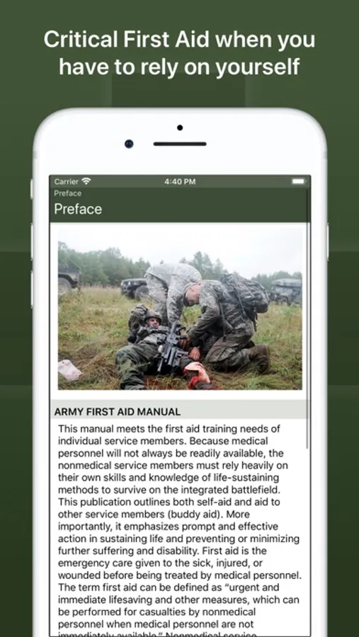 With over 600 page of information, the Army First Aid app brings the Army’s First Aid manual to you.
