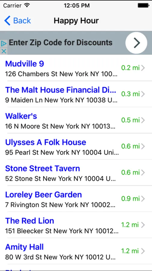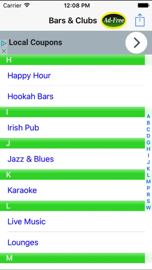 Find the nearest Bar, Pub, Happy Hour or Night Club with this cool app!