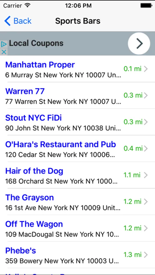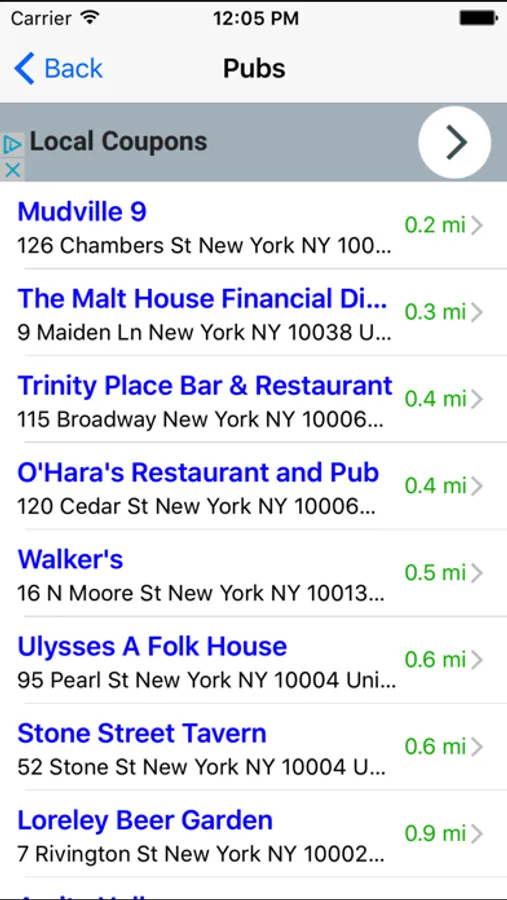 This awesome app quickly identifies your location and lets you choose the nearest Local Bar, Pub, Lounge, Sports Bar, Wine Bar, Billiard Bar, Brewery, Comedy Club, etc...
