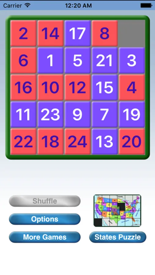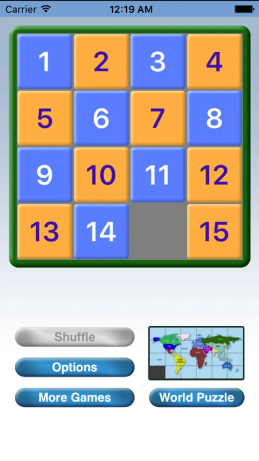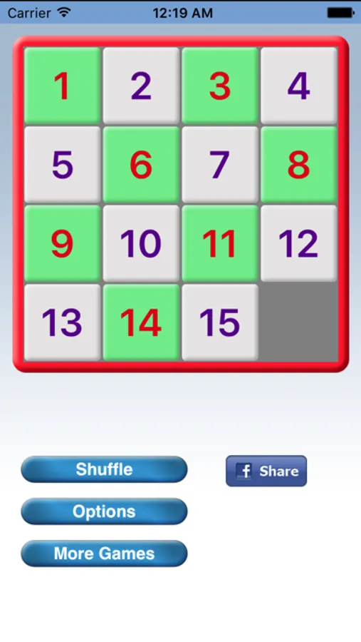 Move pieces using the empty spot to put the numbers in the correct order from left to right.