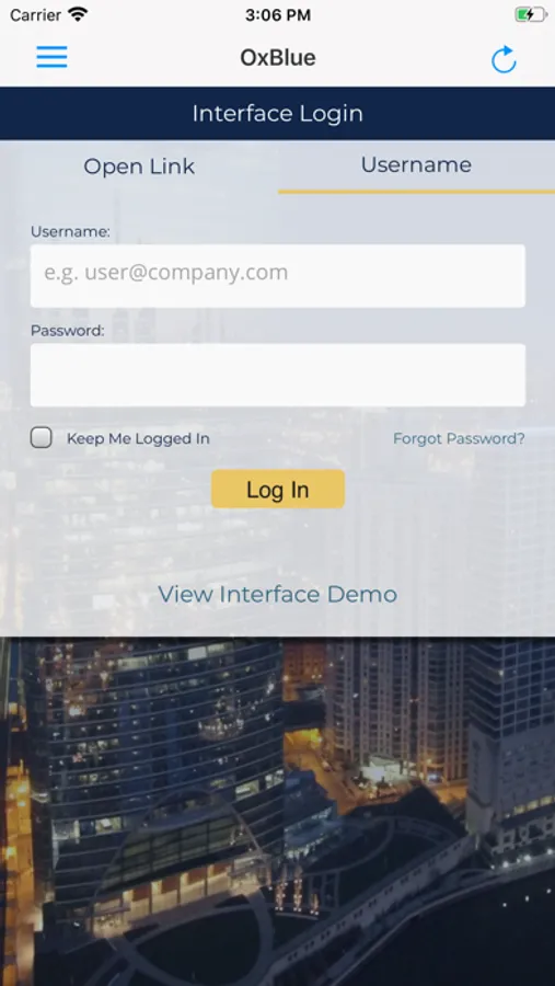 To begin, install the app then enter your username/password or OxBlue Open link for your camera.