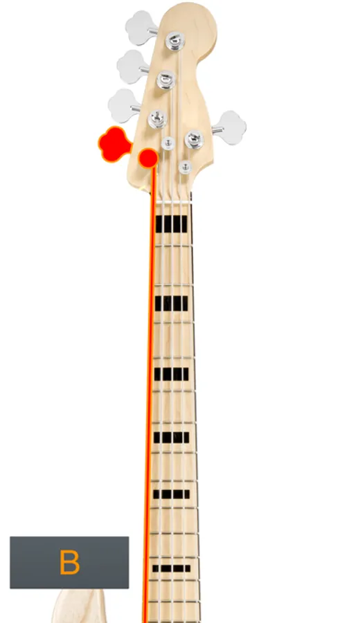 Touch the note for the string you want to tune and then turn the tuning pegs on your bass guitar and match it up with the note that is being played.