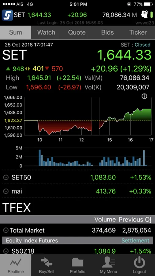 - แสดงข้อมูลการเคลื่อนไหวของหลักทรัพย์และอนุพันธ์แบบเรียลไทม์