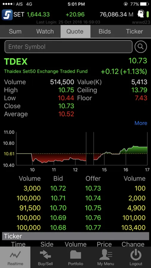Settrade Streaming, Thailand’s first iPhone Multi-Market Trading Application which is specially developed using the cutting-edge technology. Streaming for iPhone is designed to combine with the outstanding technology of iPhone, including Touch ID/Face ID and Swipe Touch Screen. With user-friendly interface, you can easily track portfolio movement, real-time quotes, price charts and news while placing orders at your fingertips. All functions are similar to those in the desktop version, enabling you to learn them in a blink of an eye.
