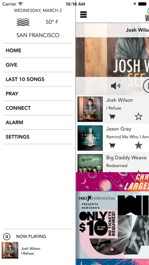 The app also gives you a list of recent songs played, allows you share prayer needs, and connects you with upcoming events.