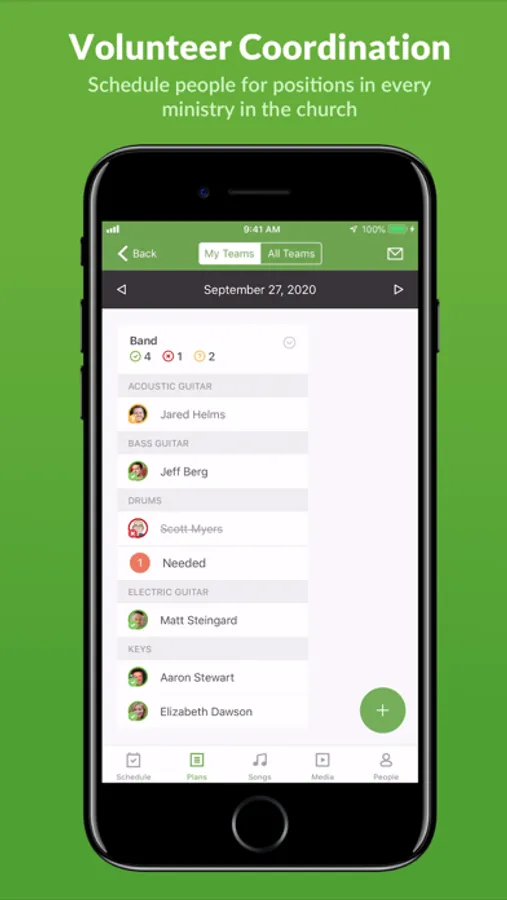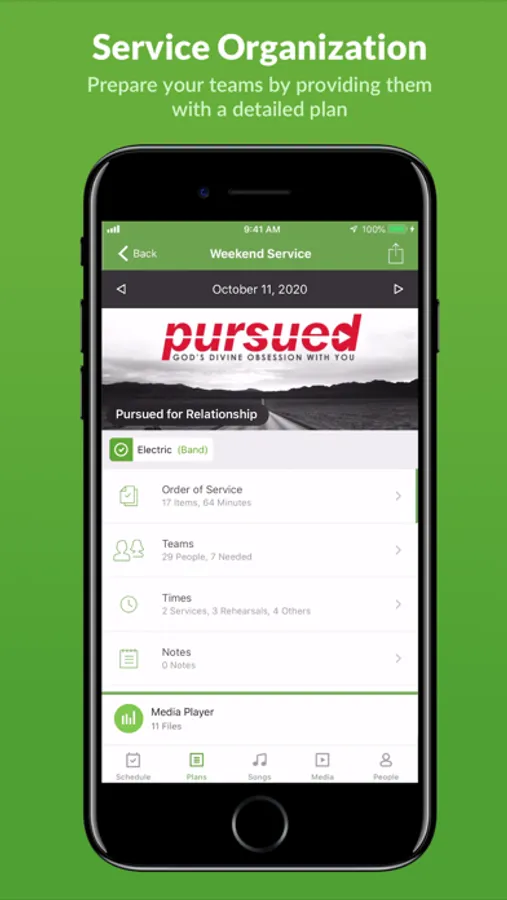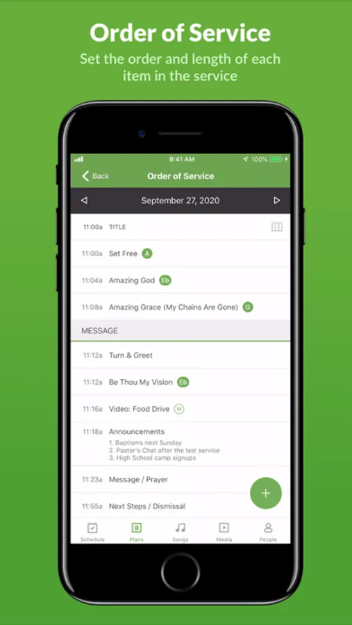 If you are responsible for scheduling volunteers or planning services, the app has features just for you! Add users to your schedule, check for conflicts, and email them at any time. Add items, songs, media or headers to your order of service and drag and drop them to reorder. Plus, the plan page and your schedule update in real time even without having to refresh!