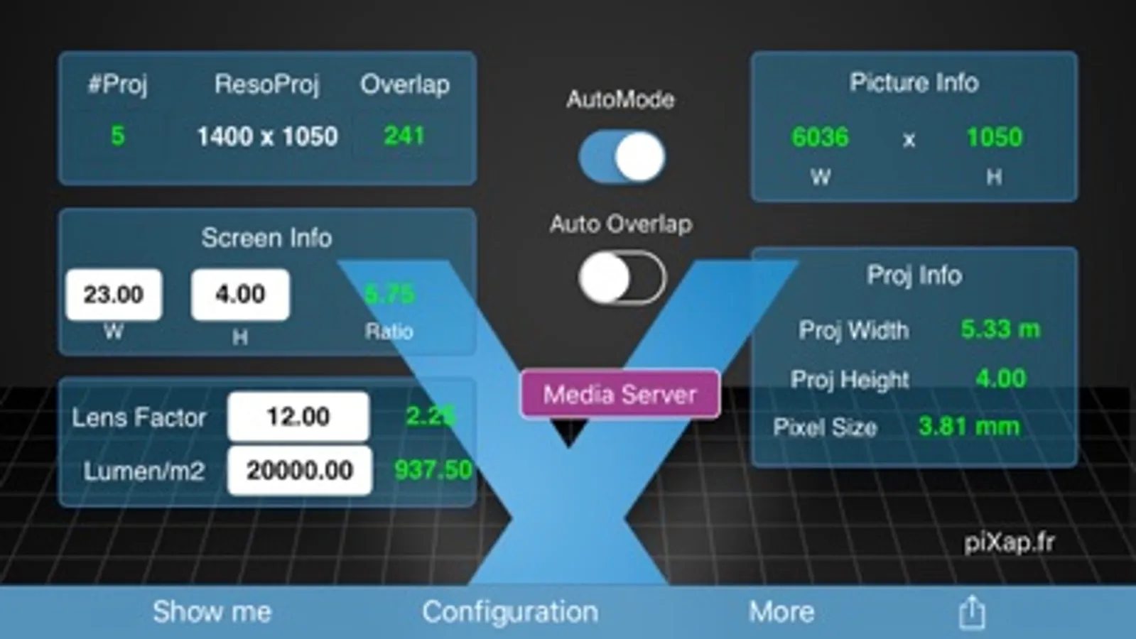 WScreenPro is an application which allows to calculate the size of a panoramic image according to the size of the screen and the resolution of the video projectors.