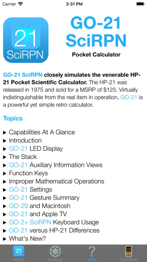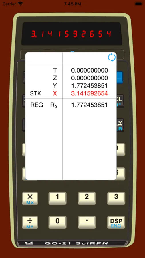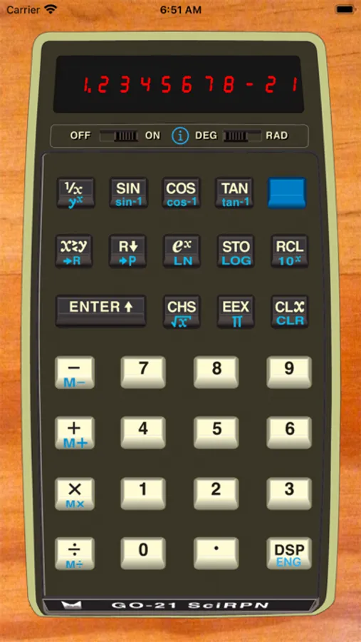 GO-21 SciRPN simulates the venerable HP-21 Pocket Scientific Calculator from 1975. Virtually indistinguishable from the real item in operation, GO-21 is a powerful yet simple retro calculator.
