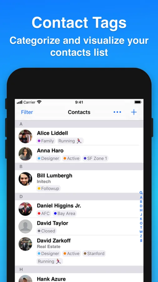 Add color-coded Tags to easily categorize and visualize your contacts list