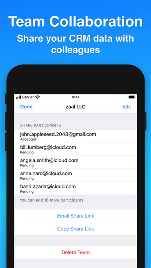 Contacts Journal For Teams requires a monthly or annual subscription that is purchased through the app. The subscription will automatically renew unless canceled within 24 hours before the end of the current period. Payment will be charged to iTunes Account at confirmation of purchase. Subscriptions may be managed by the user and auto-renewal may be turned off by going to the user’s iTunes Account Settings after purchase. Any unused portion of a free trial will be forfeited if you purchase a subscription.
