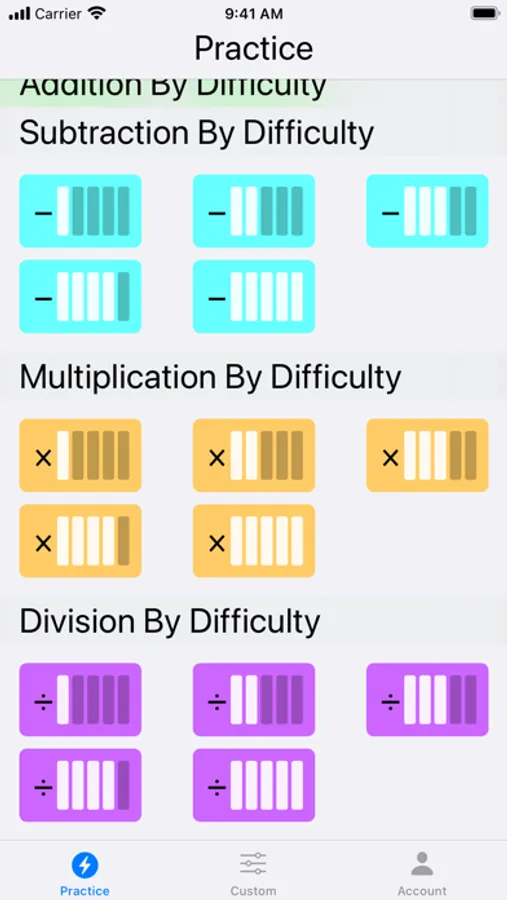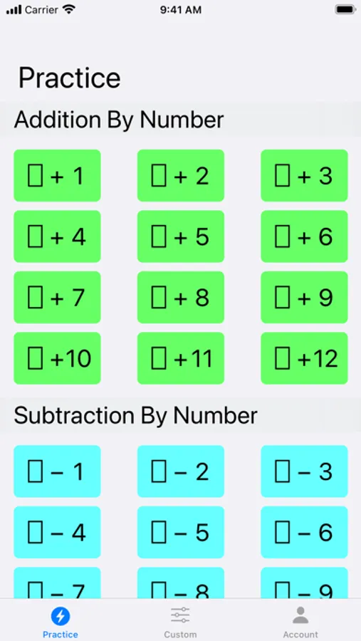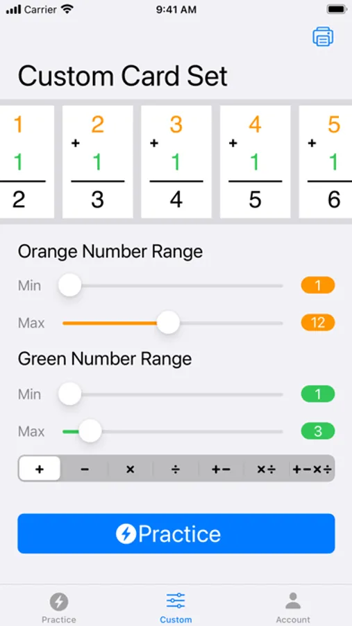 We also added the ability to create custom card sets. And you can still use any of the built-in card sets to practice by number or difficulty.