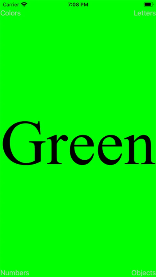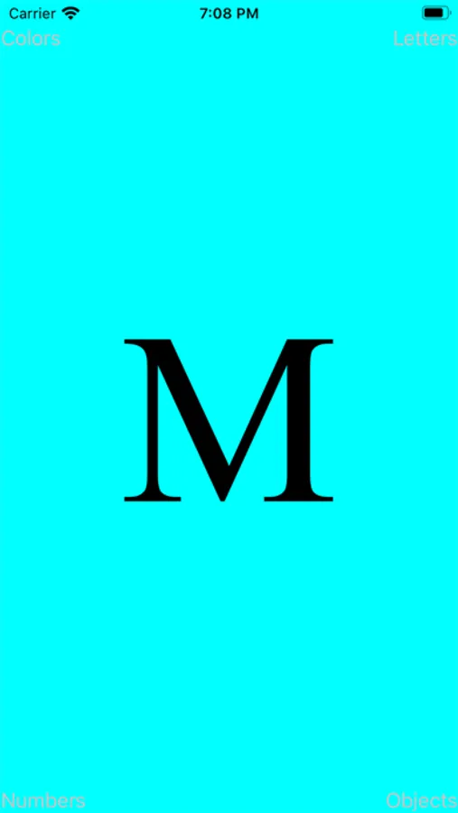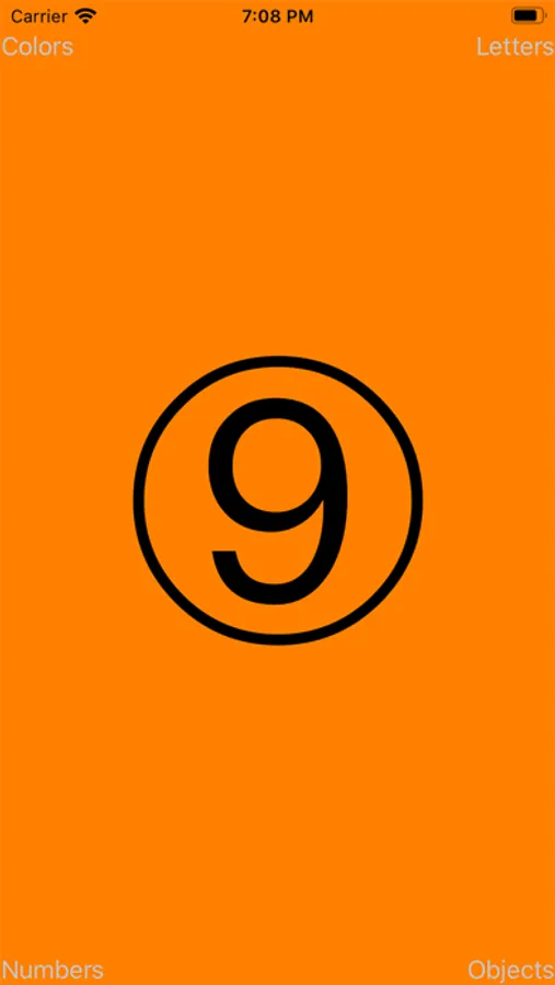 Each time you touch the screen you will hear and see a letter, number, shape, or color. The screen is divided up into four buttons one for each subject. Current version has A-Z, 1-10, 9 colors, and 8 shapes including happy and sad.
