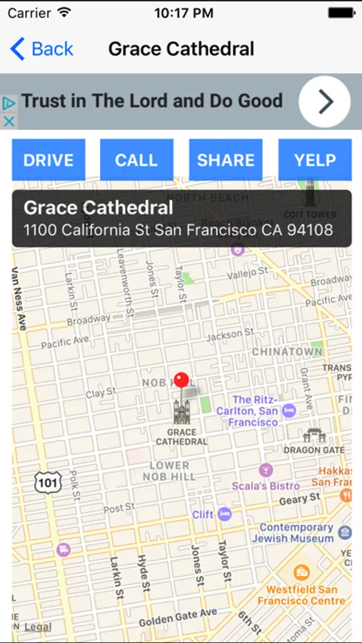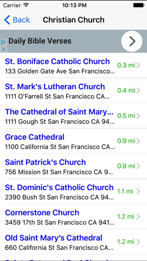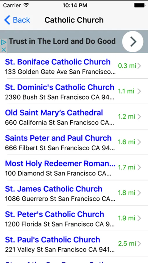 This cool app quickly identifies your location and lets you choose the nearest church.