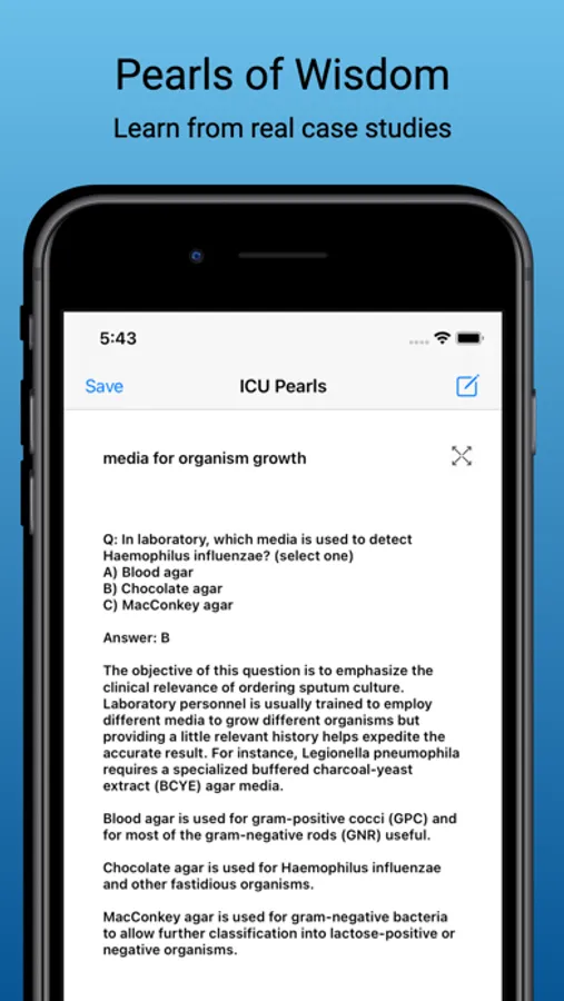 This app was developed with feedback from ICU (Intensive Care Unit) medical personnel (such as Nurses and Physicians) who asked for a way to learn pearls of wisdom collected by their peers and professors.
