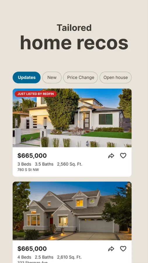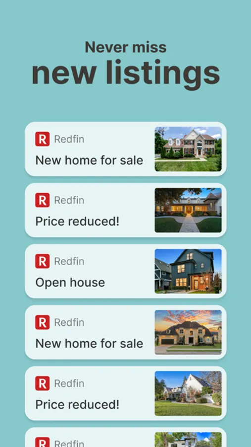 • See Listings First: Get notifications within 30 minutes for new listings in your area. Redfin has more homes for sale than other real estate apps because we’re powered by the local MLS.
