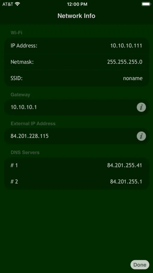 · Wi-Fi IP address and network mask info, SSID, BSSID