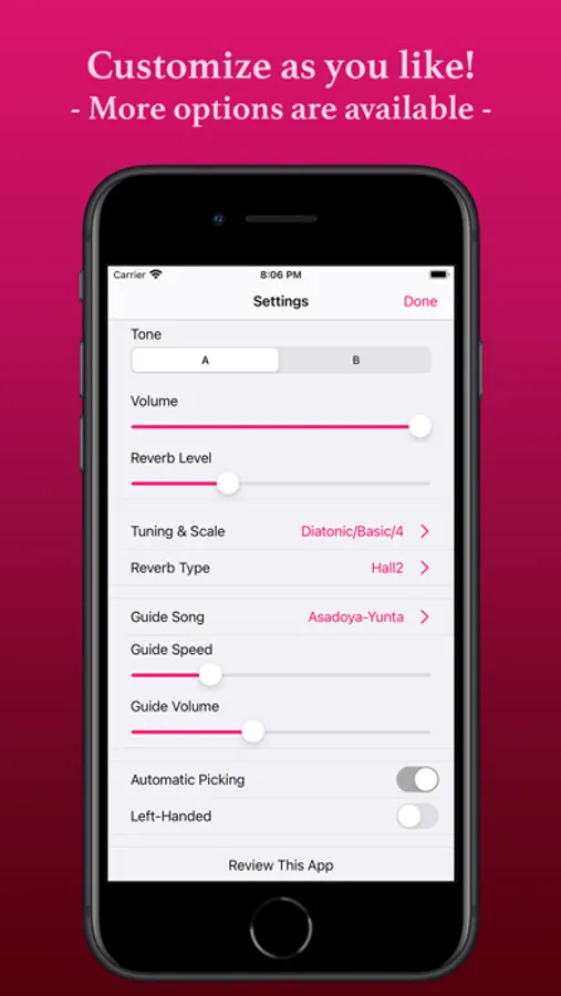 In this application, proper finger positions will be displayed on the screen with Kanji.