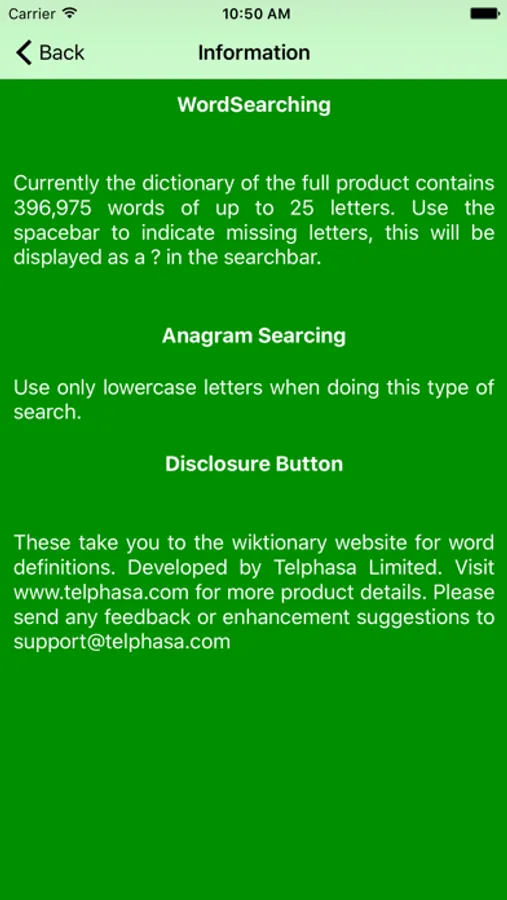 iSolve is a no frills standalone app to assist you in completing crosswords, solve anagrams, solve Sudoku or just looking at words. Also useful if you do Quordle or Wordle. The dictionary contains 396,975 words of up to 25 letters. The app is very simple to use. By default when you start the app you start from the screen for assisting you to solve crossword puzzles. Touch the text area in the searchbar at the top of the screen and the keyboard will appear. Enter the word pattern that you wish to solve using the space key for any missing characters. The searchbar will display a ? character each time you tap the space key.