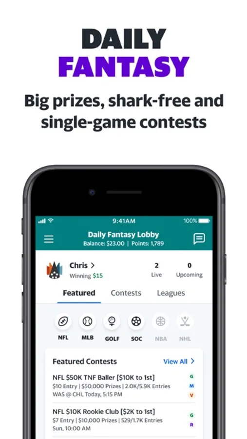 Easily switch between fantasy games & focus on what really matters: drafting your team, setting your lineup, & winning your fantasy contests! Get live scores, player news, & fantasy analysis whenever & wherever you want.