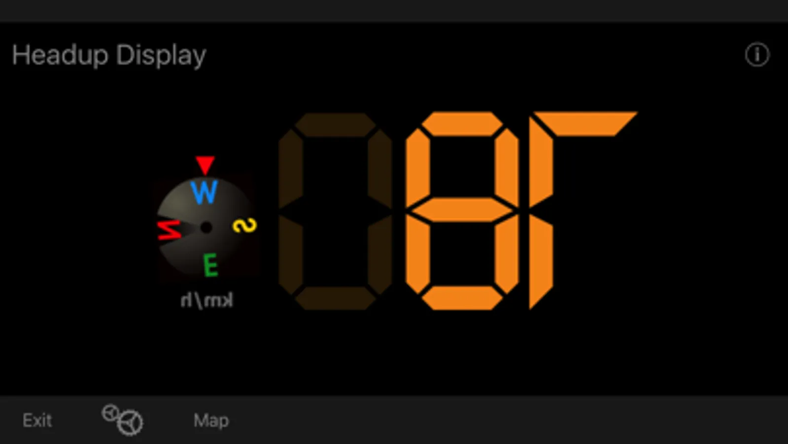 Headup-Display is a program, to screen the actual GPS-speed on the windscreen of your car. Therefore the display is mirrored on the iPhone and will be correct on the windscreen. This kind of projection is normally built in in expensive cars, but also for retrofitting there are hardware-solutions, which are expensive. With this solution you have the speed, especially at night, always in the field of view. At that the display at the windscreen is bright, clear and recognizable.