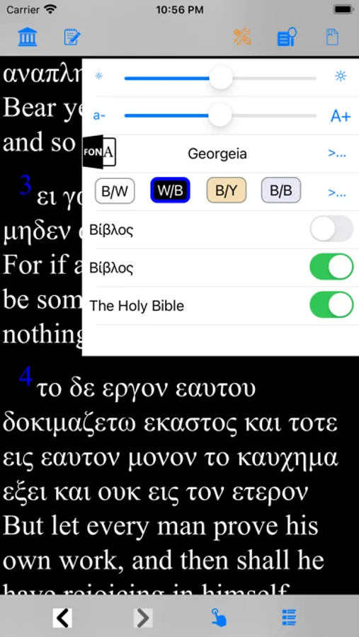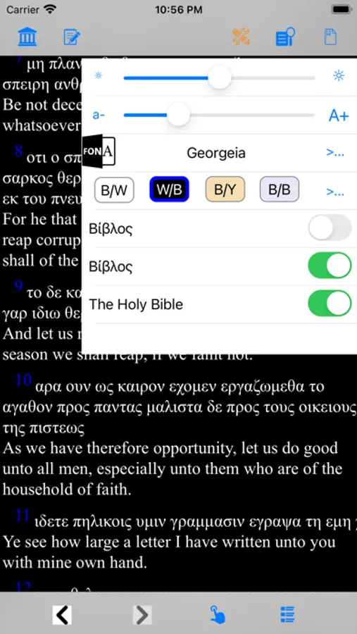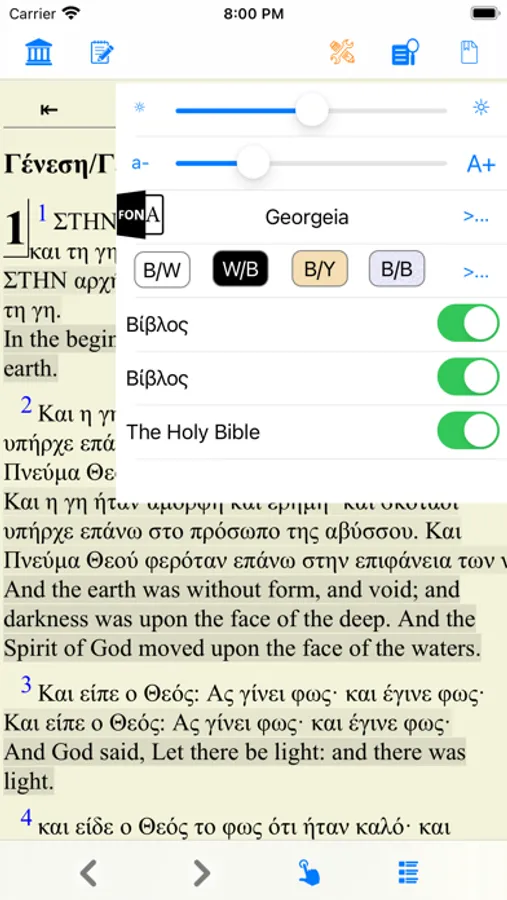 * Remembers the last reading location (exact book, chapter and scroll position)