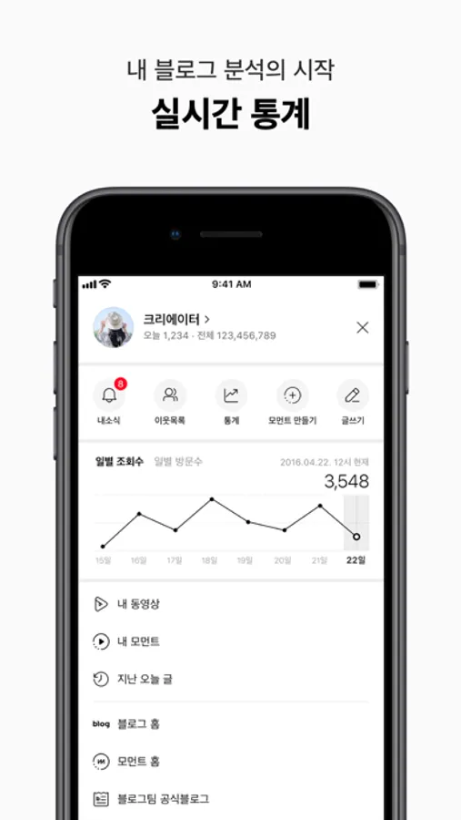 네이버 블로그 모바일 애플리케이션으로 언제 어디서나 포스트를 쓰고, 이웃의 소식을 확인할 수 있습니다.