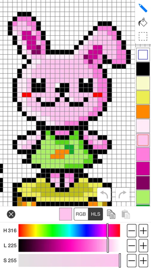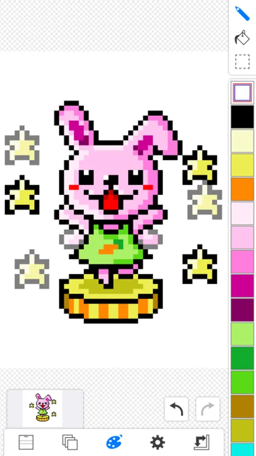 Pixels can be drawn directly by tapping. It makes creating pixel art