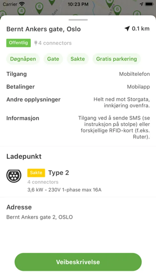 * Picture of the charging station, number of connecters, whether it is free or chargeable, whether there is a time limit, what charging speed, what type of connector, type of payment and description of the charging station.