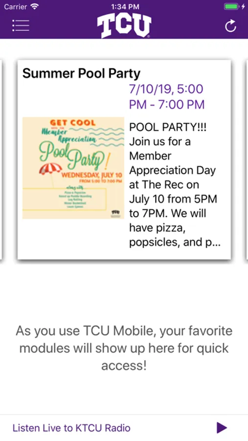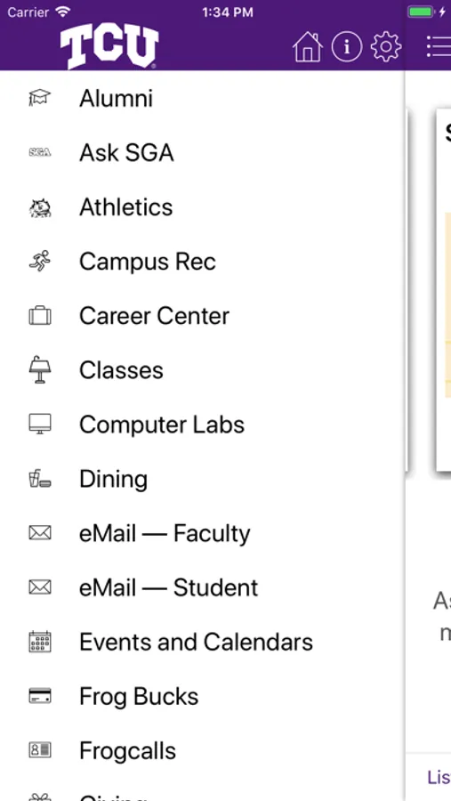 - Athletics: Shortcuts to the gofrogs.com site and the official Riff Ram app