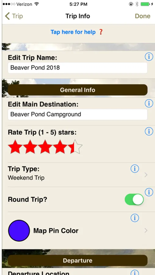 TRIPS: Plan, track and review all of your trips, whether to a great new campsite, to the maintenance shop, or convenience store. Organize and display new and existing Trip Logs. Each Trip tracks departure and destination time and location, a 5-star rating, notes, and one-way or round-trip. The Map view displays the path of your trip based on the associated Trip Logs. You can even select a custom color for Trip Log pins and path overlay in the Map view.