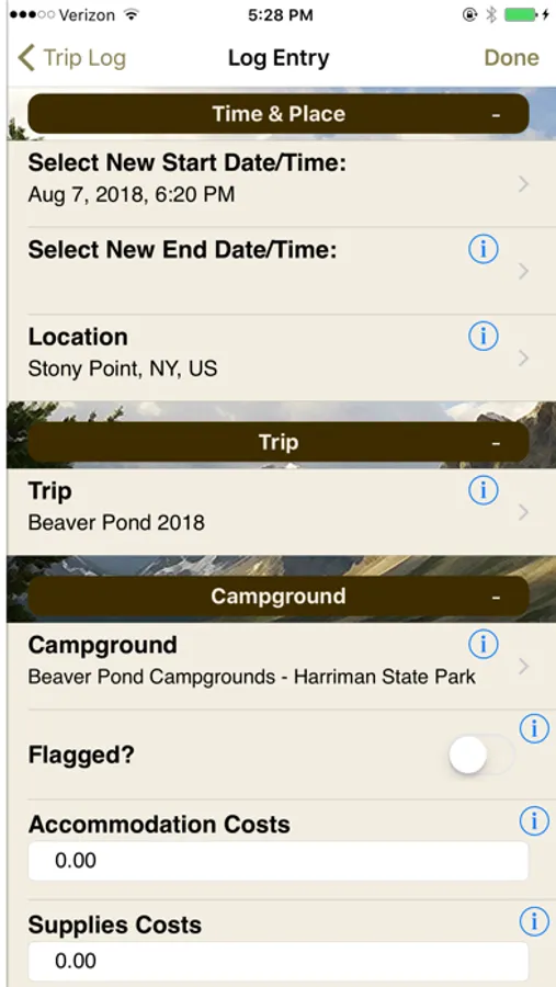 TRIP LOG: Keep a record of visits to campgrounds and record information like fishing catches, friends that you meet, attractions that were visited and nearby restaurants. Flag important entries for quick retrieval later. Entries are grouped by campground or campground type. A great way to keep a history of your RV experiences.
