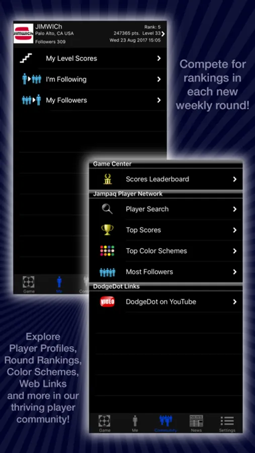 - Built in leaderboard network where you can have your own profile, see rank listings for players, friend other players,etc.