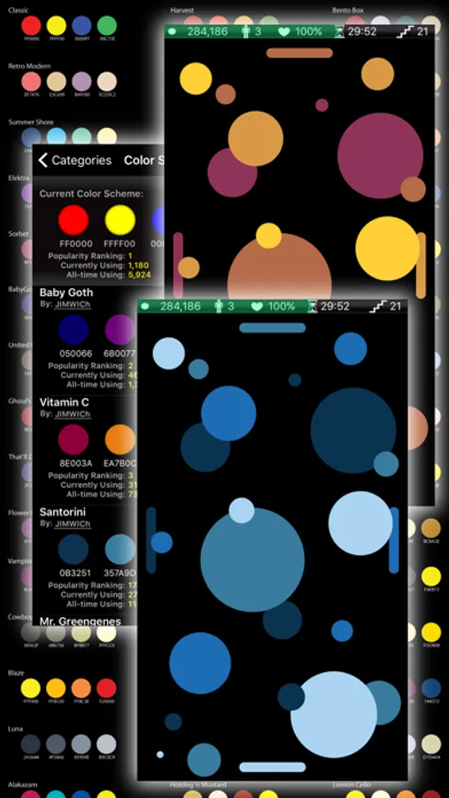 DodgeDot™ is also a visually pleasing game of colors. Choose your favorite four-color schemes to play with, from a large selection of palettes.