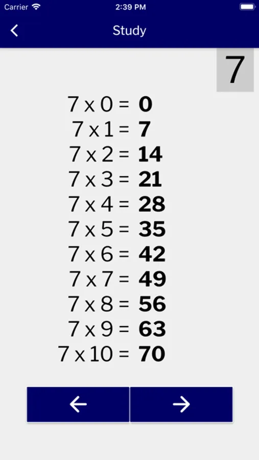 You can look at the tables to memorize them, and then you can use the game to test your learning. There are three levels - easy, medium and hard - and the game will recode your best results for each level.