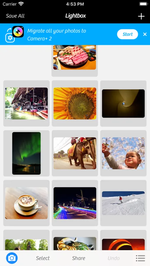 All the pics you take in Camera+ go in the innovative Lightbox where you can quickly and easily skim through them and get rid of bad shots. You save only the photos you’re satisfied with so that your camera roll stays neat and clean.