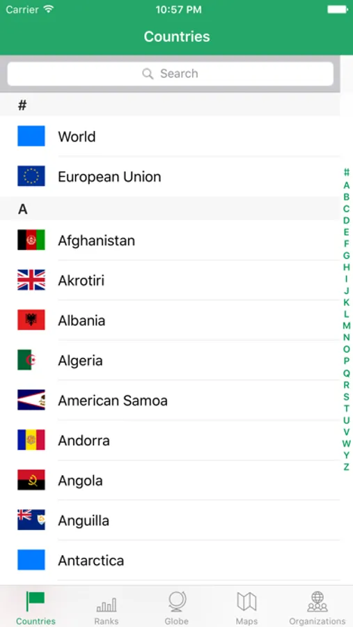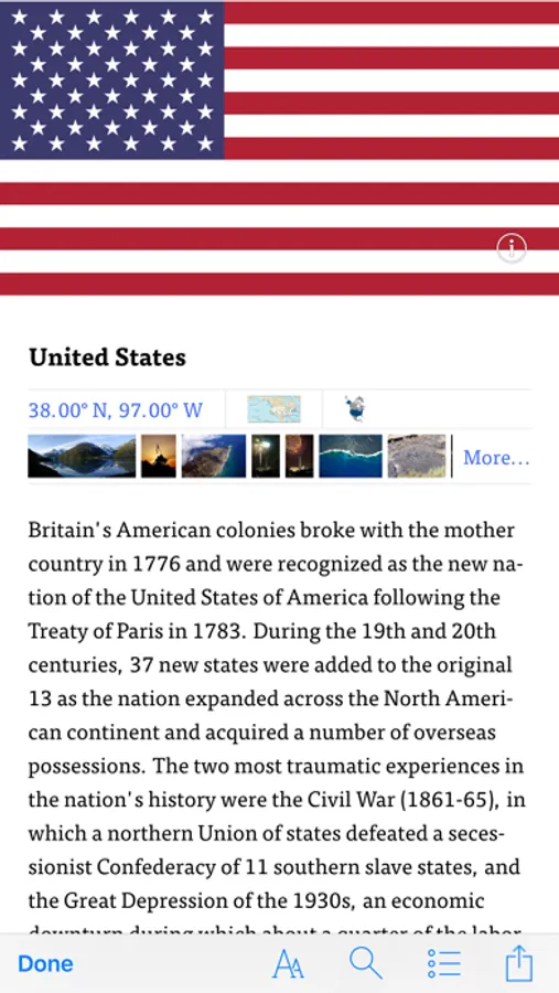 The Factbook provides information on the history, people, government, economy, energy, geography, communications, transportation, military, and transnational issues for 267 world entities. All datas are offline, no Internet connection required.
