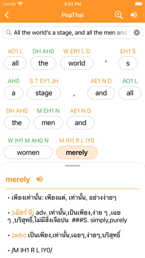 Longdo Dict client on iPhone features: