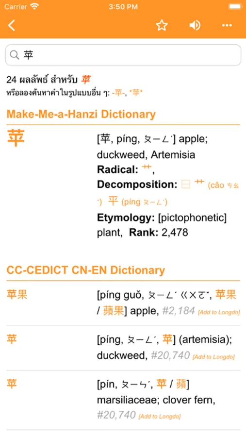 Longdo Dict เป็น iOS แอป อย่างเป็นทางการของบริการพจนานุกรมลองดู (ลองดูดิกชันนารี)