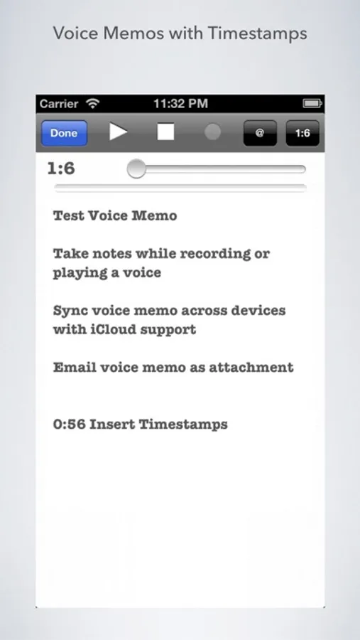 Record or play voice memos while simultaneously typing notes. You can also insert time stamps to correlate the point in time a certain portion of the note was typed