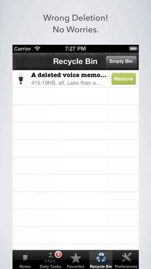 Create and Organize Daily Tasks(todos), Rich formatted Notes, Voice Memos, Freehand Scribbles (draw with your finger), save Internet files, Pictures and Videos all in one app with iCloud support.