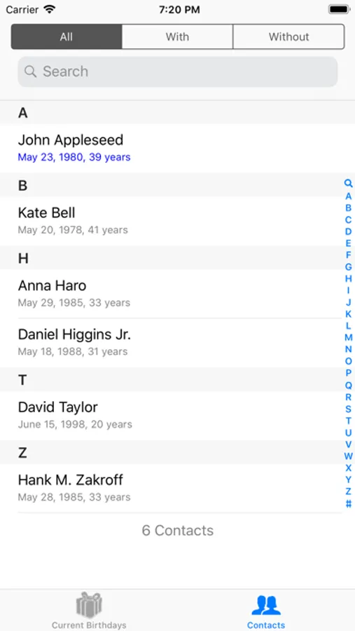Organize your iPad, iPhone's or iPod's contacts' birthdays