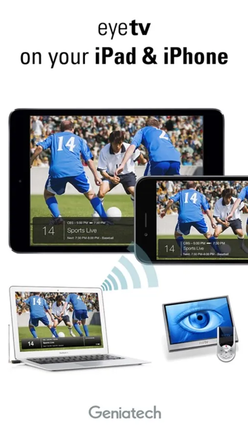 The EyeTV app turns your iPad and iPhone into the ultimate portable television! Access the EyeTV software and hardware running on your Mac at home anywhere you have an LTE/3G or Wi-Fi connection.