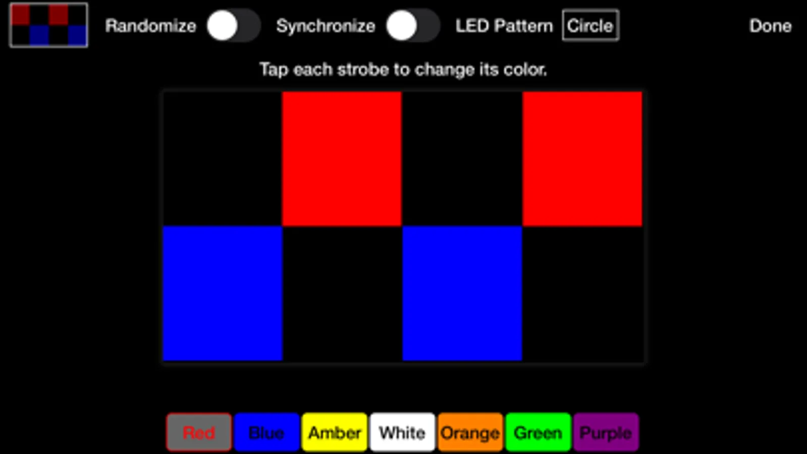 The app simulates emergency vehicle strobe lights (with or without an LED effect) in your choice of 15 light patterns.